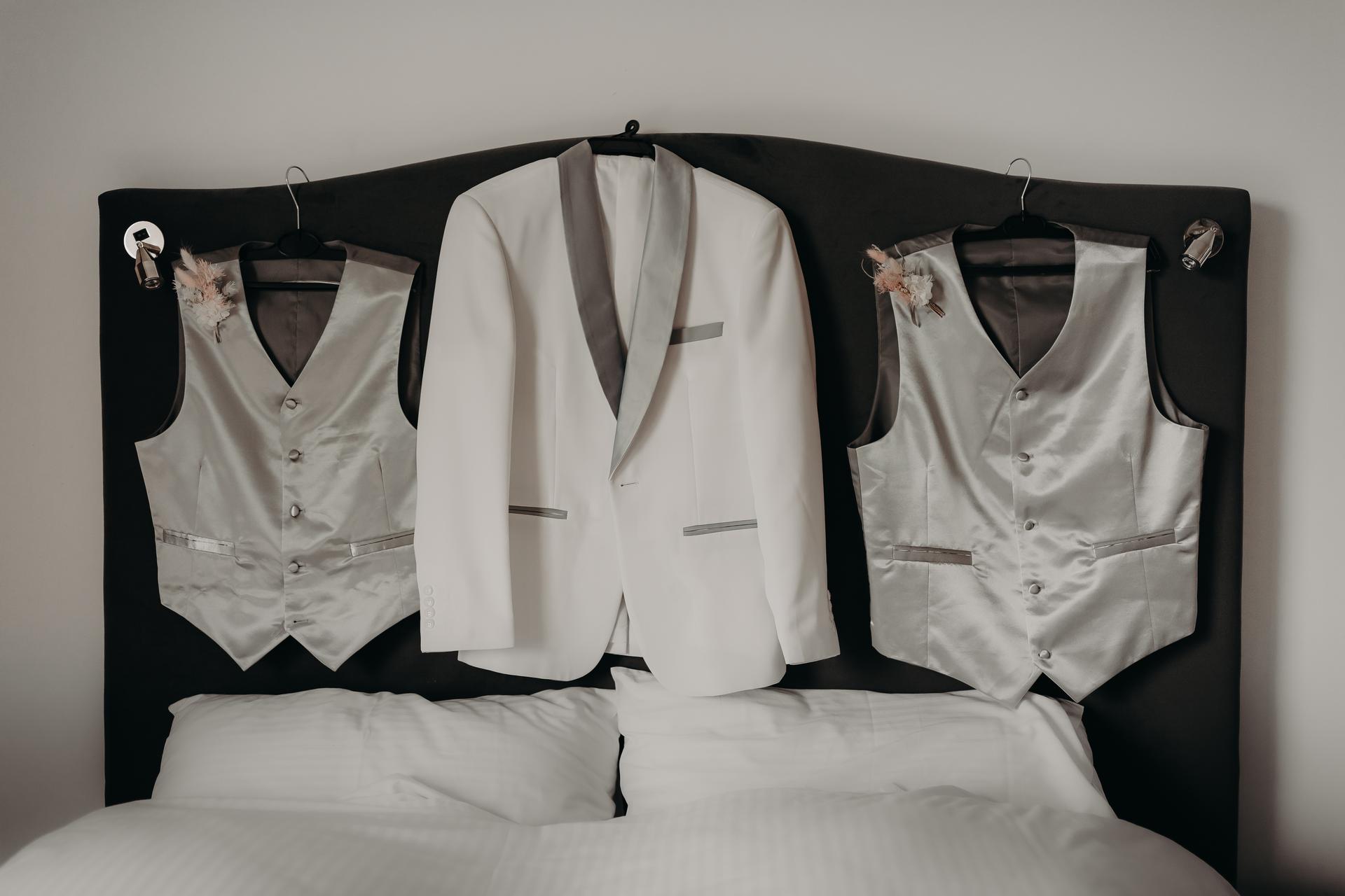 Soft morning light filtered through the tall windows at Royal on the Park as Timothy adjusted his silver vest with the help of his groomsmen. In another room, Henny stood in her white gown and veil, bouquet in hand, surrounded by bridesmaids whose dresses echoed the calm anticipation in the air. The quiet of these early moments set the tone for the day, each detail considered and every gesture deliberate.